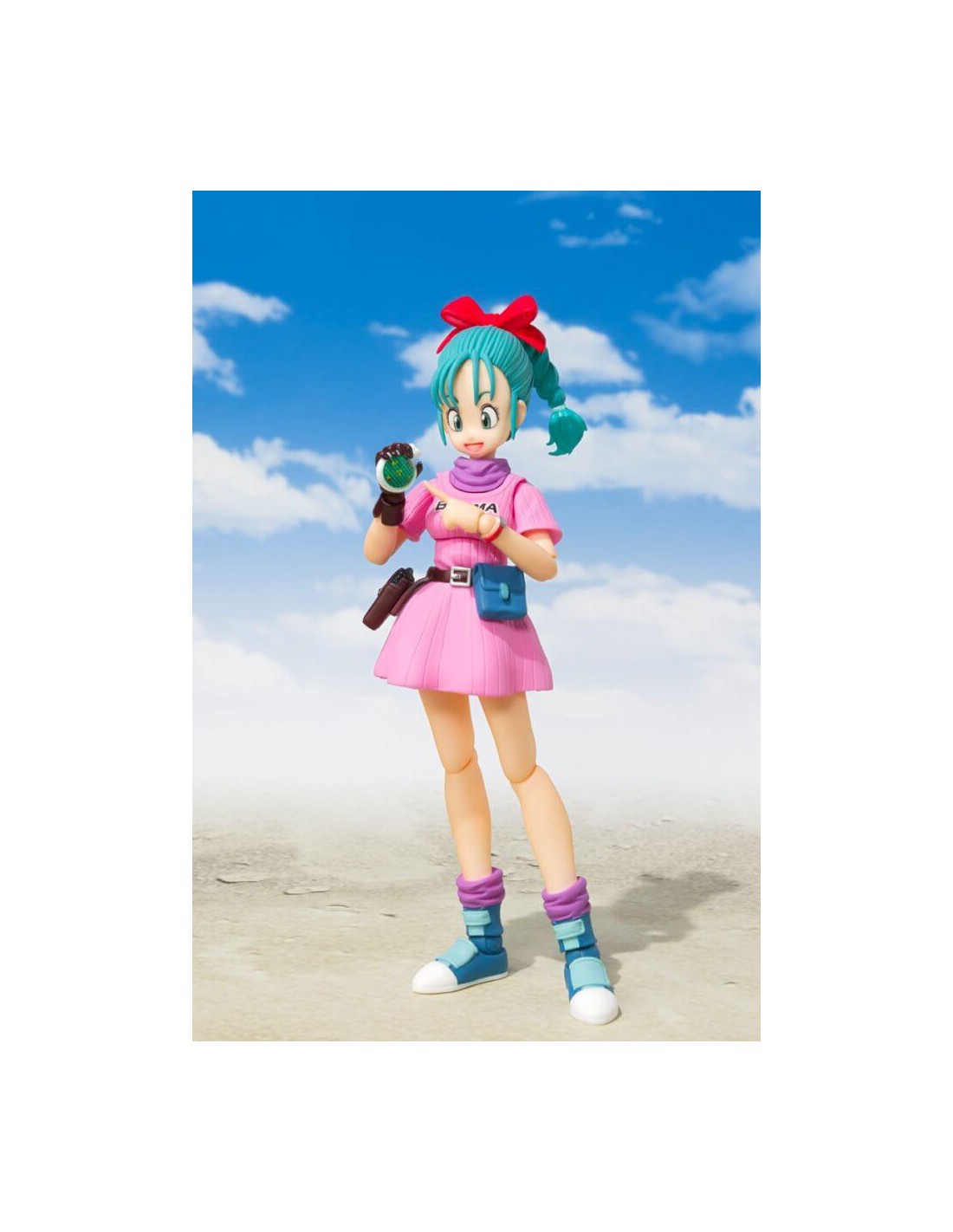 Bulma in her iconic pink outfit from the very first episode of Dragon Ball, originally broadcast in 1986 when the adventure began. This S.H.Figuarts action figure from the Tamashii Nations lineup captures the brilliant Capsule Corporation inventor exactly as she appeared when she first met Goku in the Mount Paozu wilderness.