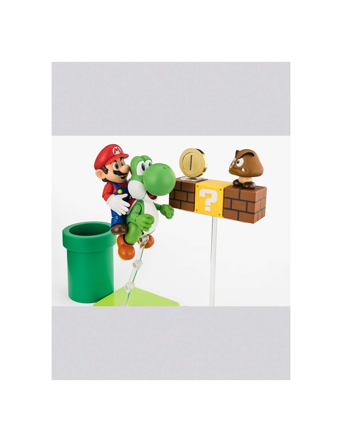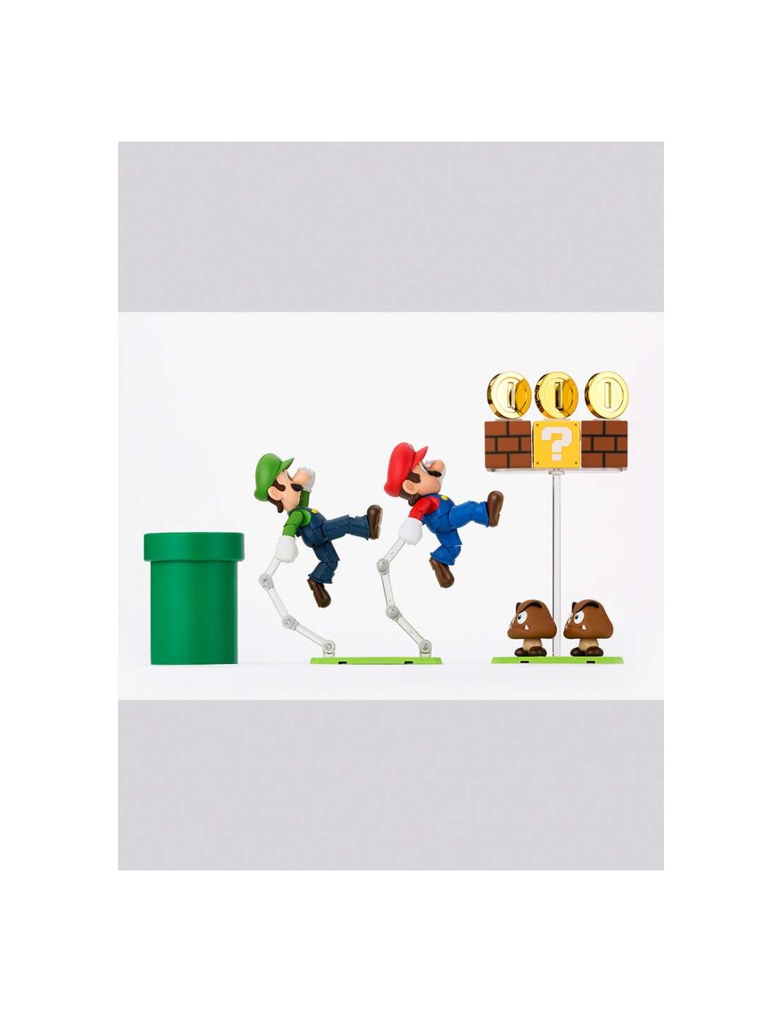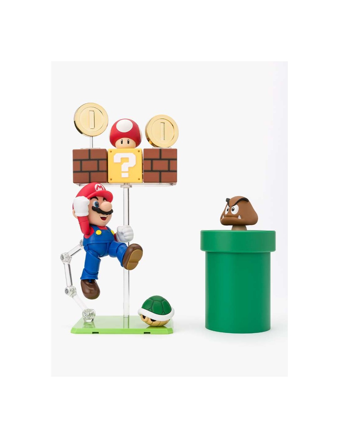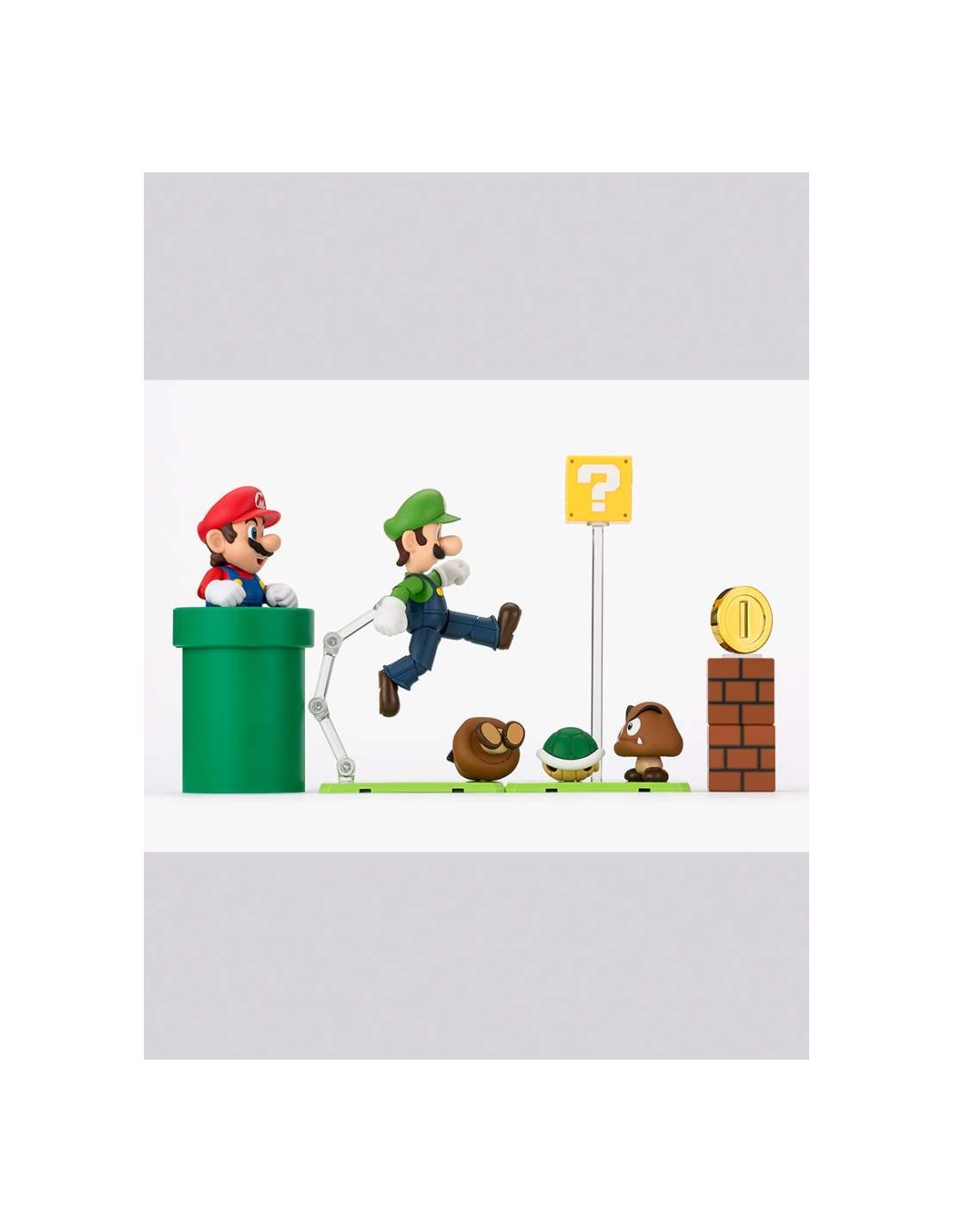 Full compatibility with all S.H.Figuarts Super Mario Bros figures allows you to progressively expand your gaming world. The advanced articulation system and special supports included enable you to position Mario and Luigi in spectacular aerial poses, recreating the famous block-jumping action or the most memorable acrobatics from the series.