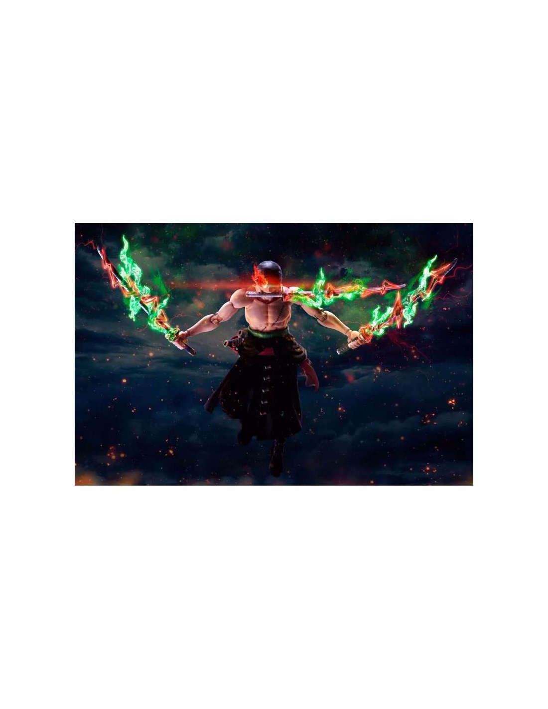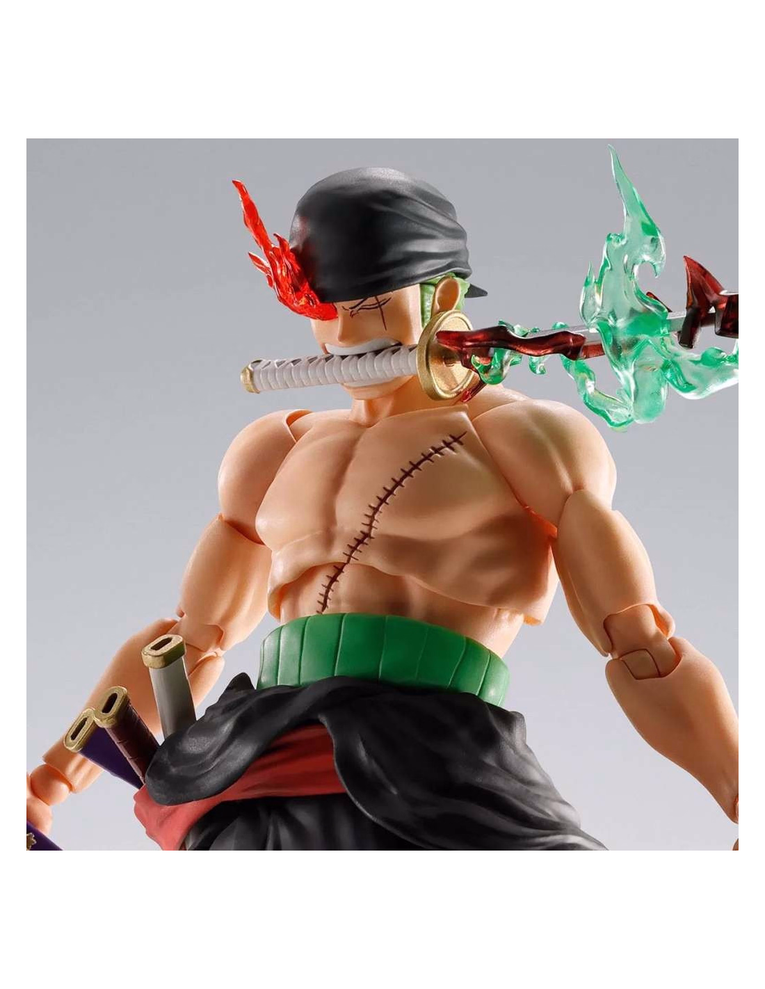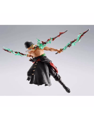 The S.H.Figuarts Roronoa Zoro King of Hell figure by Bandai Tamashii Nations depicts the Straw Hat Pirates' swordsman in his most powerful form, captured during the climactic battle at Onigashima. This action figure recreates Zoro at the moment he unleashes the full power of his Haki and masters the three-sword style with absolute determination.