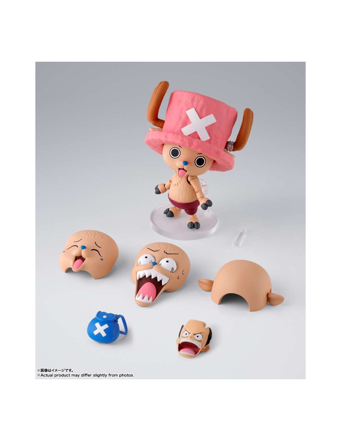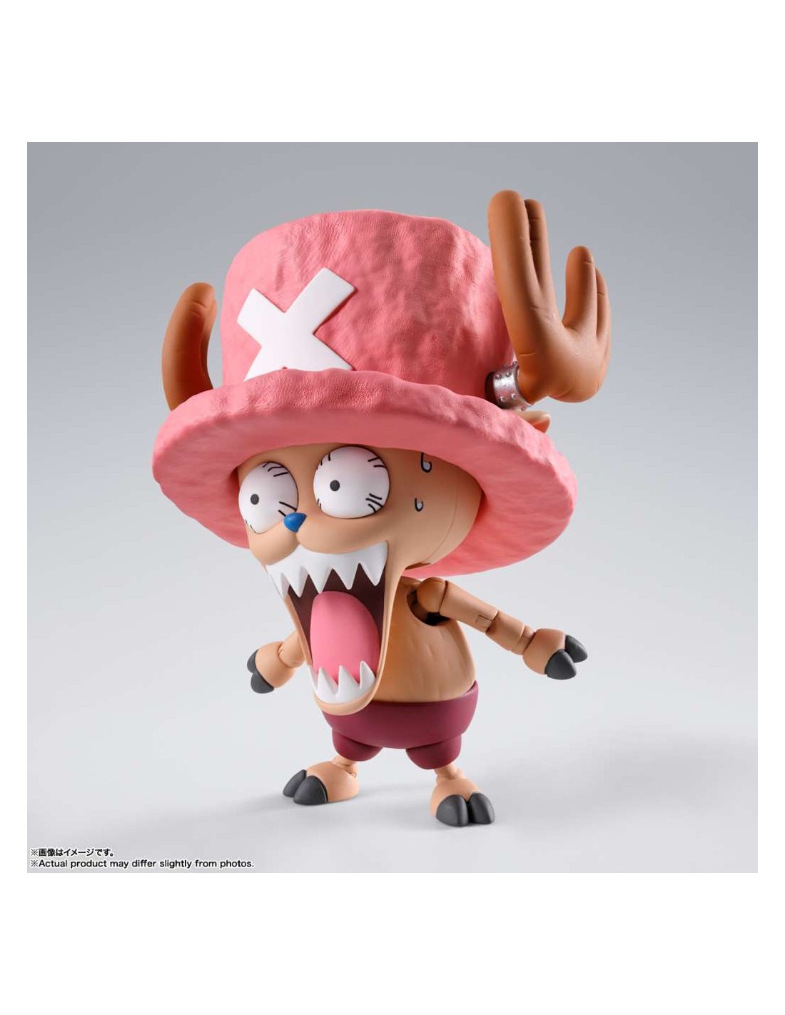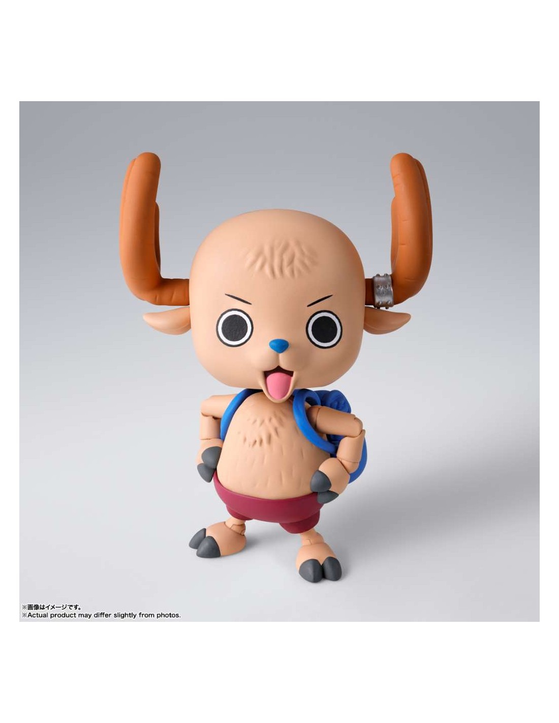 This S.H.Figuarts action figure presents Tony Tony Chopper in his Drum Island appearance, featuring the original outfit worn by the Straw Hat Pirates' doctor when he first appeared in the anime series. Manufactured by Bandai Spirits as part of the Tamashii Nations lineup, this figure stands approximately 75 mm tall and is crafted from PVC and ABS materials.