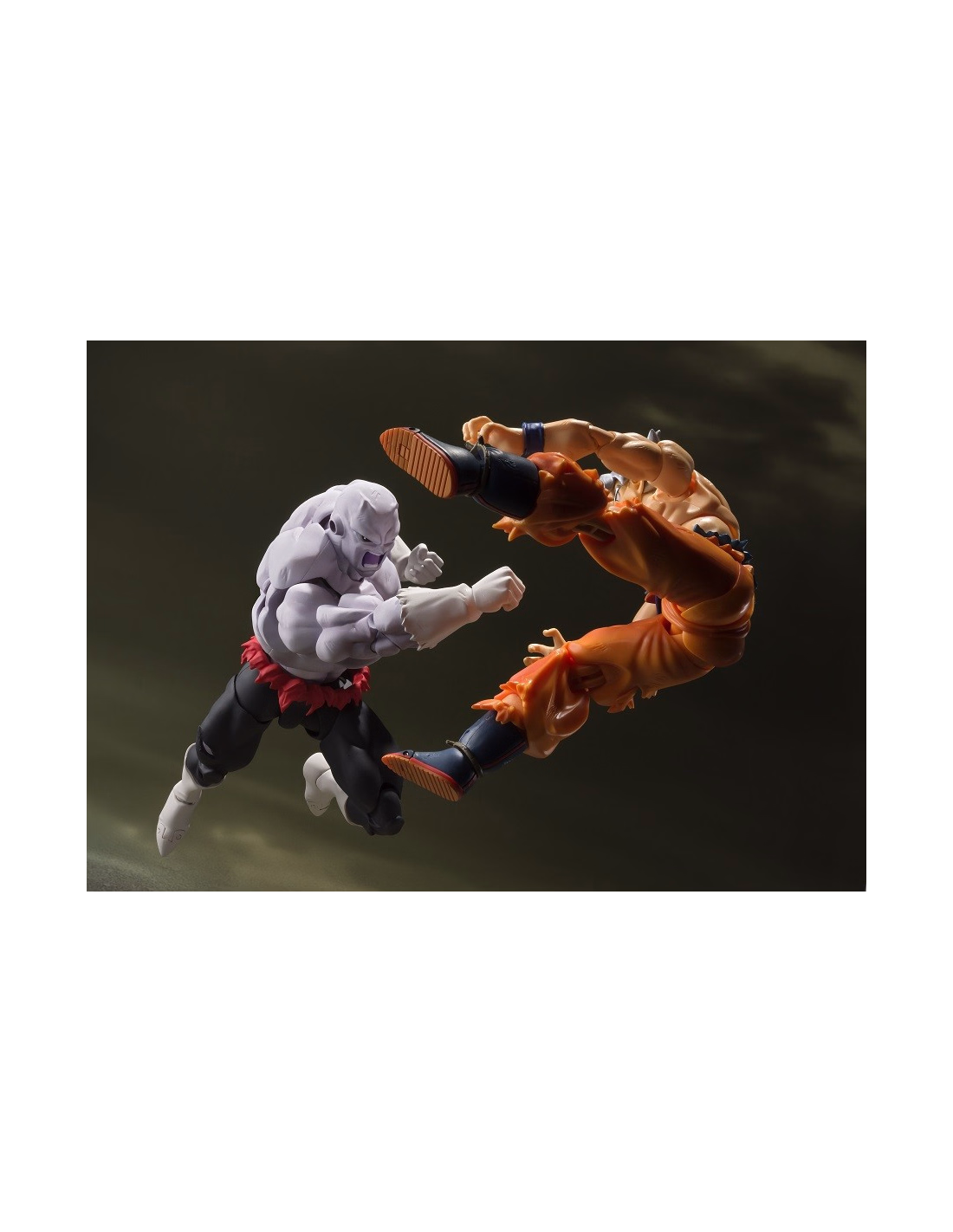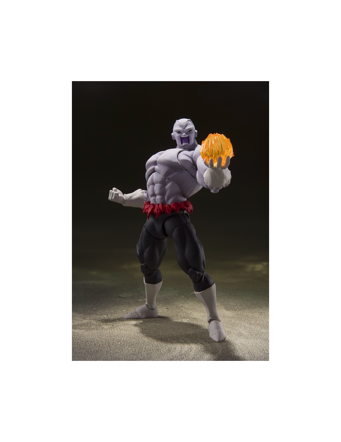 Jiren, as he appeared in his final battle with Son Goku, joins S.H.Figuarts! It features new sculpting, including an expanded upper torso plus visible "damage" enhance the drama, accentuated even further by effect parts that let you re-create his epic clash with Goku! The set includes the figure, three optional head parts, thre pairs of optional hands, and effect parts.