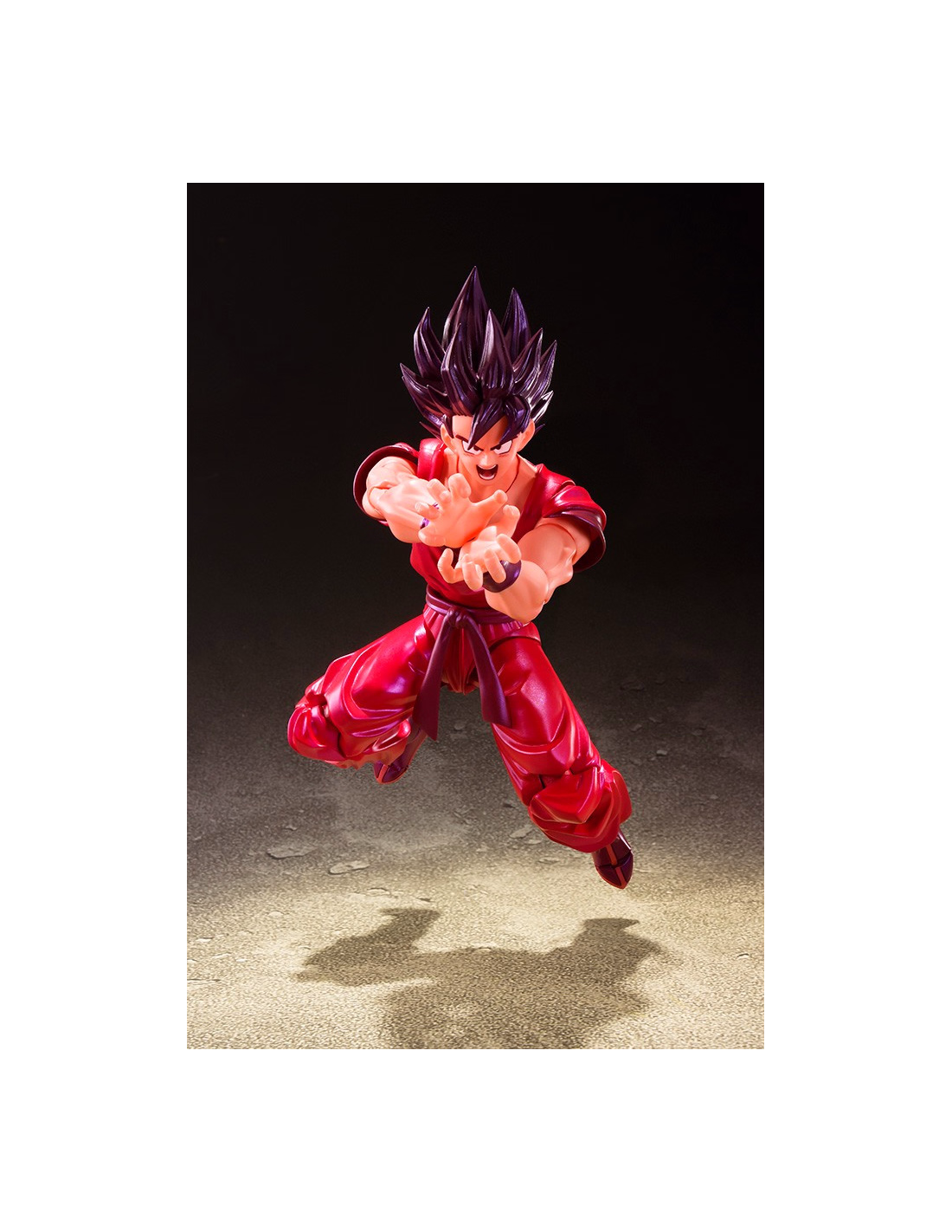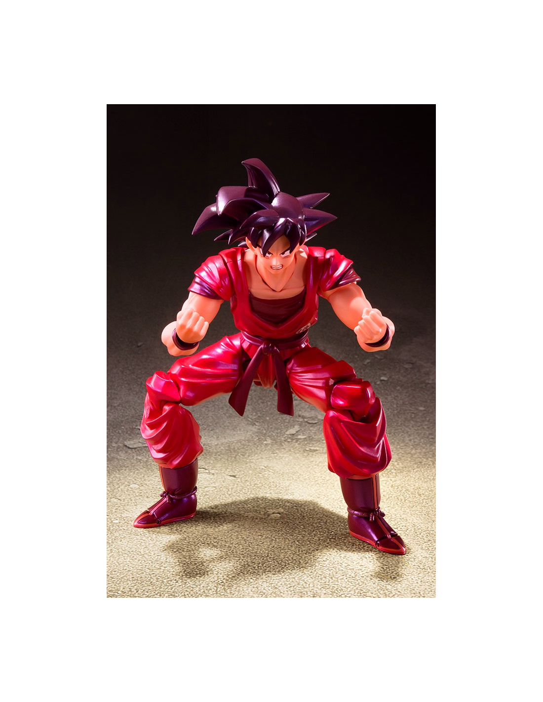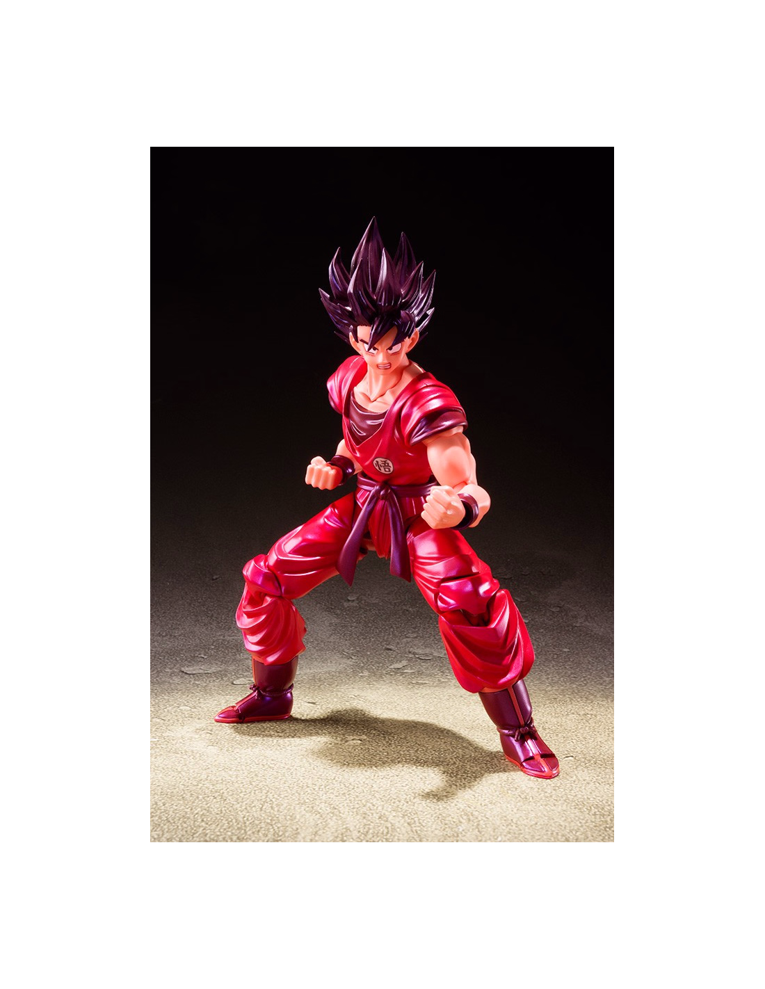 A figure of Son Goku in his epic "Kaioh-ken" form! Finished with beautiful pearlescent parts to accentuate this dynamic move's power, you can recreate battles with Captain Ginyu, Vegeta, and Frieza (Sold separately)! The figure includes an optional head, two optional expression parts, and two pairs of optional hands.