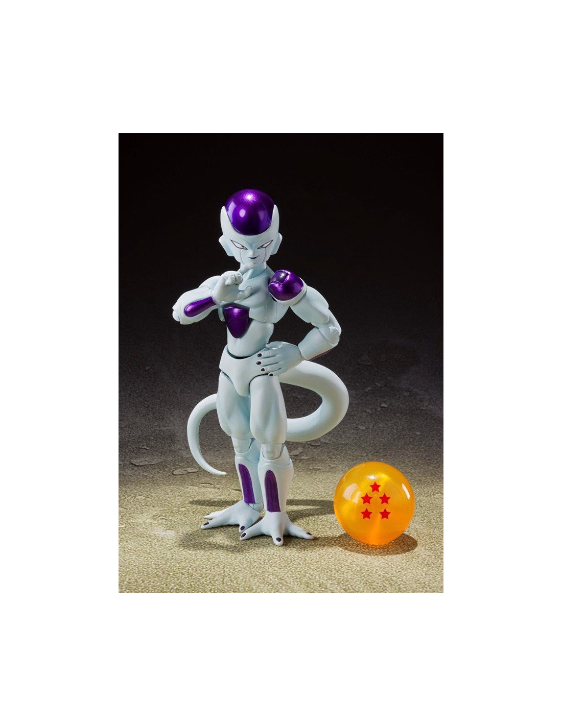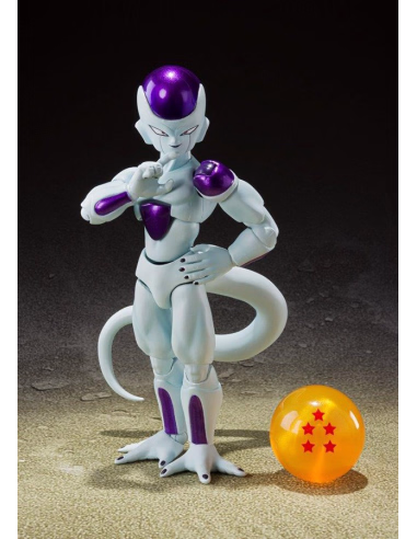 Frieza Fourth Form, as seen in "Dragon Ball Z," joins S.H.Figuarts! Numerous optional parts and effects let you re-create dynamic action scenes, and the set includes a Namekian Dragon Ball (5-star version).