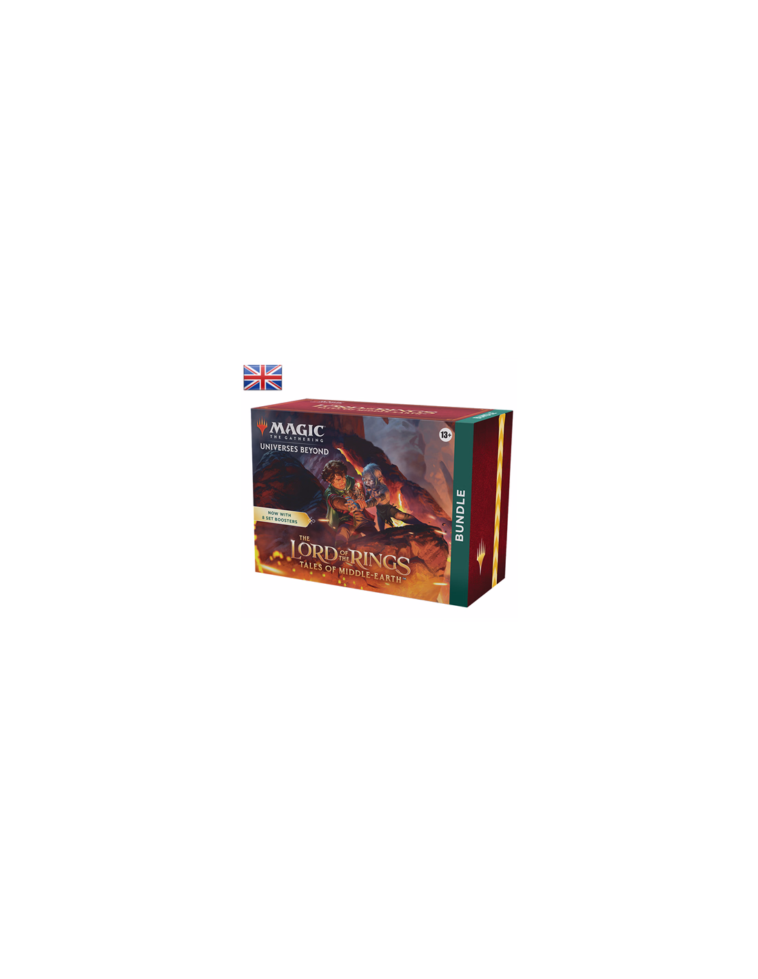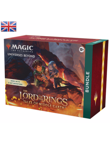 The Lord of the Rings: Tales of Middle-earth Bundle contains 8 The Lord of the Rings: Tales of Middle-earth Set Boosters—the best boosters to open just for fun—plus other The Lord of the Rings-themed goodies, with 4 Traditional Foil alternate-art cards, 40 basic land cards (20 Traditional Foils and 20 nonfoils), 1 oversized Spindown for life counter, 1 card storage box, and 2 reference cards.
