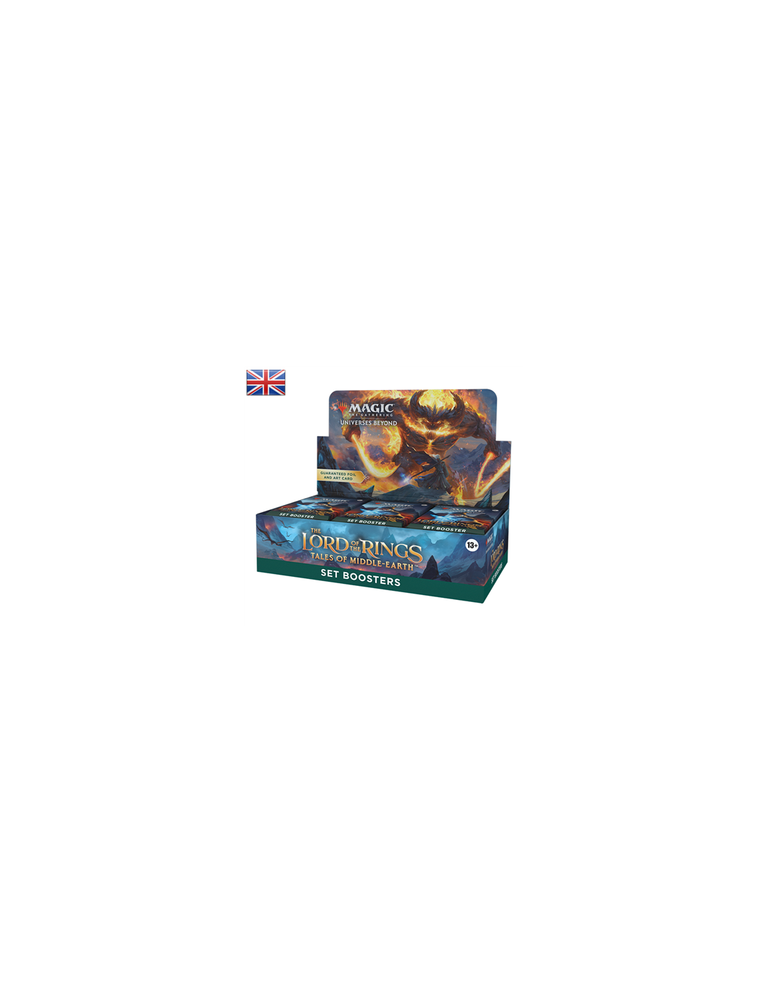 The Lord of the Rings: Tales of Middle-earth Set Booster Box contains 30 The Lord of the Rings: Tales of Middle-earth Set Boosters and 1 Traditional Foil Box Topper card. Each Set Booster contains 12 Magic cards, 1 Art Card, and 1 token/ad card, Helper card, or card from “The List” (a special card from Magic's history—found in 25% of packs).