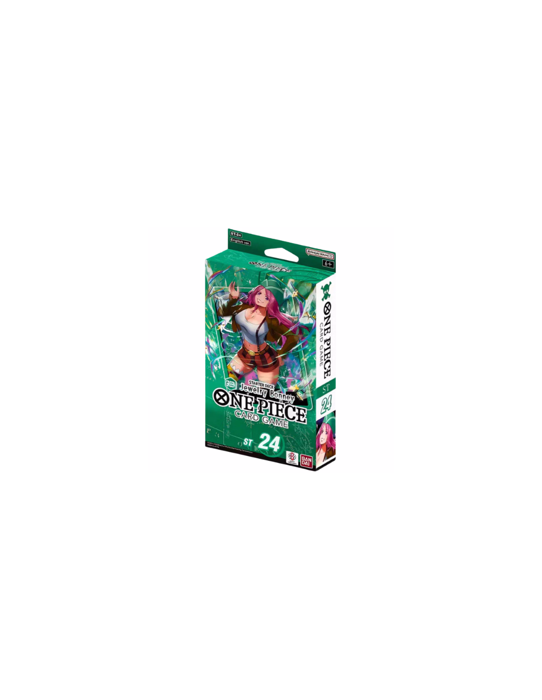 The ST-24 Jewelry Bonney (Green) Starter Deck offers an excellent introduction to the strategic world of One Piece Card Game, focusing on the Supernovas with a defensive approach and battlefield control capabilities. This pre-constructed deck excels at stopping opponent attacks and effectively managing game resources.