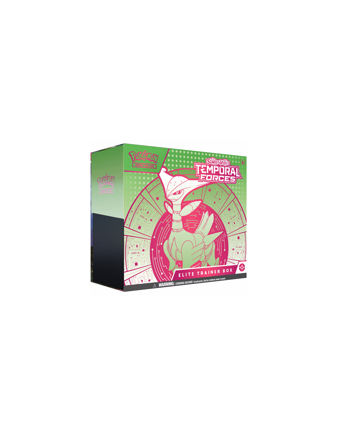 The ranks of Ancient and Future Pokémon continue to grow! Walking Wake ex breaks free of the past alongside Raging Bolt ex, while Iron Leaves ex delivers high-tech justice with Iron Crown ex. Outside Area Zero, Wugtrio and Farigiraf shift types as Tera Pokémon ex, and Pokémon Trainers everywhere prepare for the return of ACE SPEC cards with uniquely powerful effects. A rupture in time brings wild beasts and cyber visions to battle in the Pokémon TCG: Scarlet & Violet—Temporal Forces expansion!