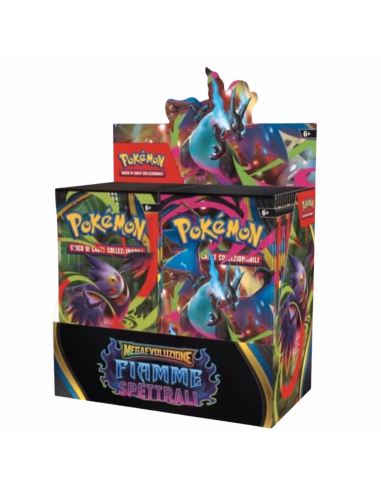 The Mega Evolution - Phantasmal Flames Booster Display Box contains 36 sealed booster packs from the highly anticipated Pokémon TCG expansion. Each pack includes 10 carefully randomized cards, one Basic Energy card, and a code card to unlock digital content in Pokémon TCG Live.