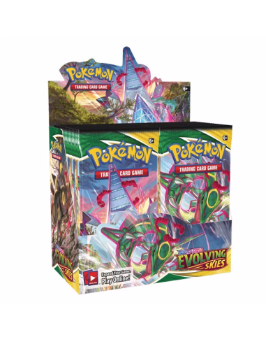 Feel the power of the shifting winds, and brace for an epic storm as mighty Dragon-type Pokémon make their triumphant return! Rayquaza VMAX leads the surge from on high, and Duraludon VMAX towers above the land in its Gigantamax form, joined by Dragonite V, Noivern V, and more. As the clouds part, Eevee's Evolutions appear in a full rainbow of Pokémon V and Pokémon VMAX to signal a bright new day in Pokémon TCG: Sword & Shield—Evolving Skies!