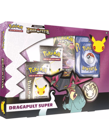 Diving at supersonic speeds, Dragapult swoops into your collection as an impressive Pokémon Prime! This powerful collection includes Pokémon TCG: Celebrations boosters as well as Dragapult Prime and its ghostly stealth—can you strike at just the right moment? If so, dig just a touch deeper and you’ll find additional surprises including a binder and more!