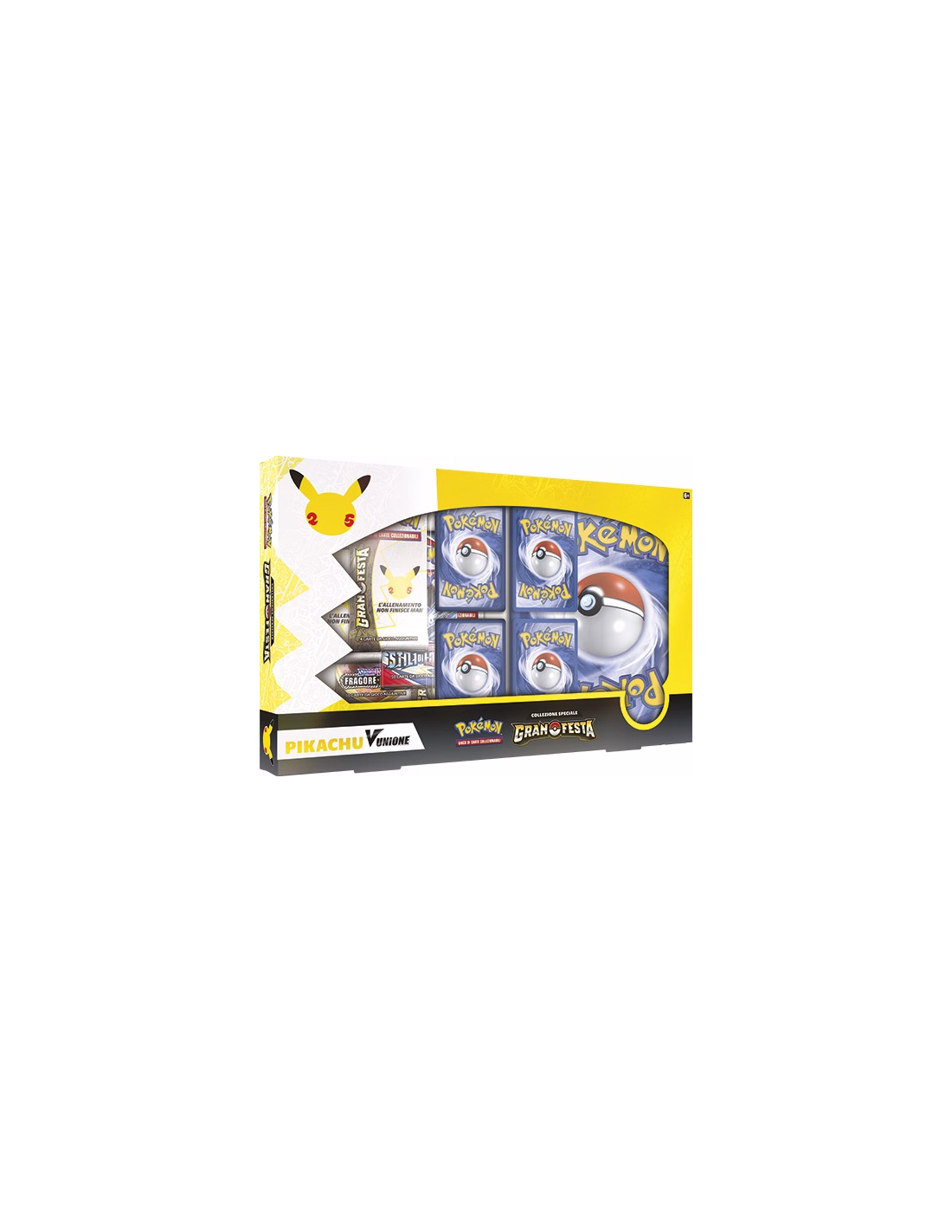 Celebrate a fun new challenge with Pikachu V-UNION: a single powerful Pokémon divided into four cards! You’ll have to assemble this star player from your discard pile (with the help of Professor Burnet), but once you do, it brings four awesome attacks and impressive HP into battle. This special collection also includes an oversize card showcasing Pikachu V-UNION as a single illustration, plus a handful of Pokémon TCG: Celebrations booster packs.