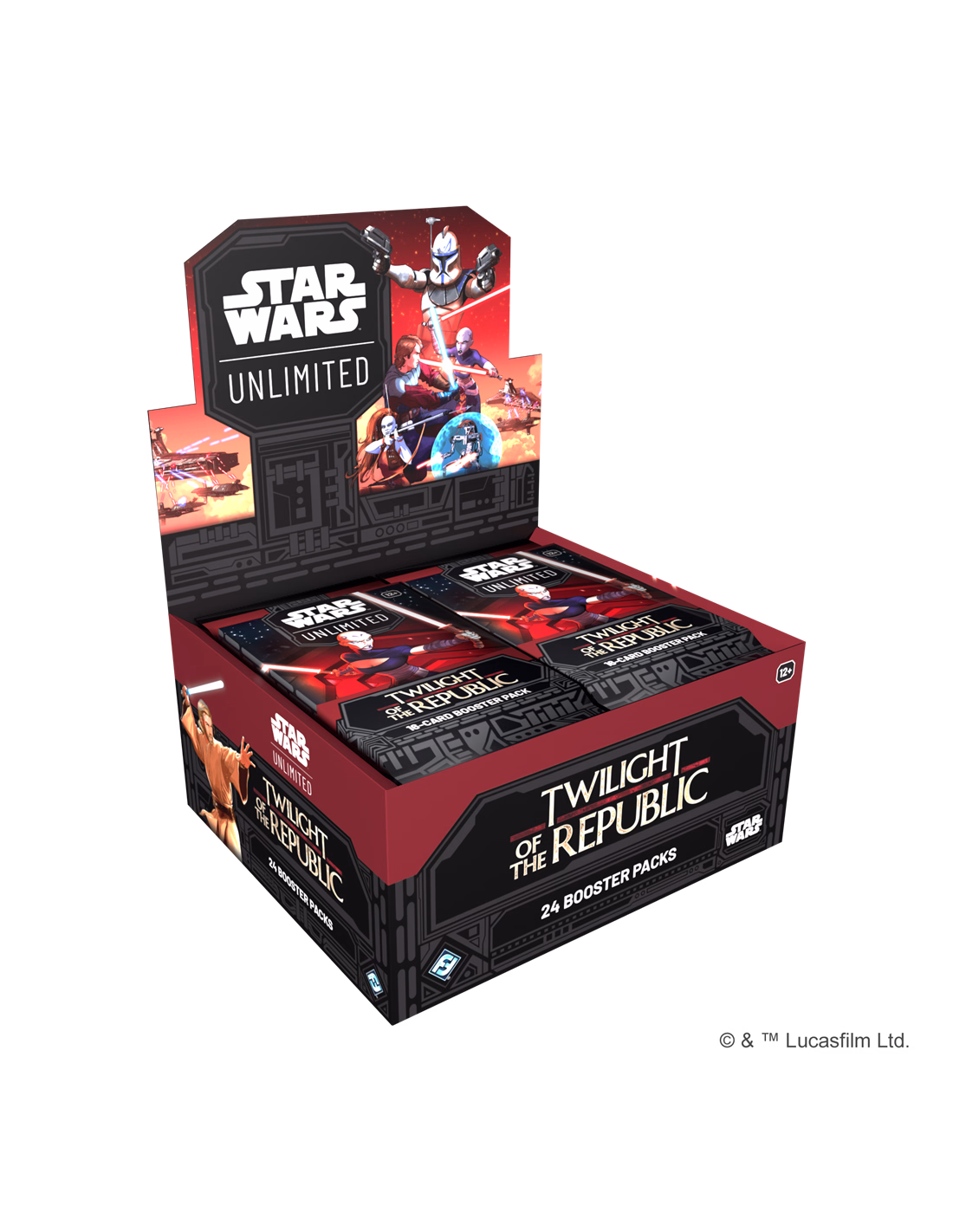 Enter a galaxy of endless possibilities in Star Wars™: Unlimited! In this fast-paced, easy-to-lean trading card game, you and your opponent face off in exciting head-to-head battles full of iconic Star Wars characters. In this booster pack display for the game's third set, Twilight of the Republic, you'll find 24 individually wrapped booster packs. Each pack contains 9 common cards, 3 uncommon cards, 1 rare or legendary card, 1 leader, 1 base/token, and 1 foil card.