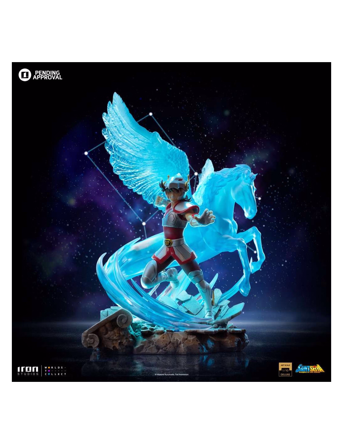 A masterpiece that captures the essence of the legendary Bronze Saint in his most iconic form. This Pegasus statue, the third in Iron Studios' prestigious collection dedicated to the Saint Seiya universe, faithfully reproduces the protagonist with his unmistakable classic look that has captivated generations of fans.