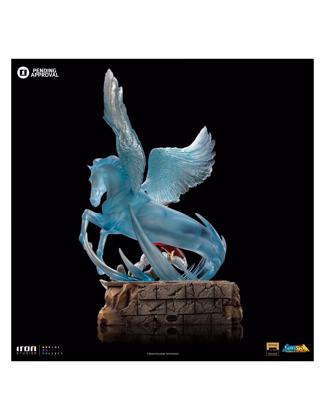 The deluxe version offers a superior visual experience thanks to the exclusive base representing an ice wall from which emerges a majestic crystalline pegasus. The effect is further enhanced by integrated LED lighting, giving the ensemble an almost magical dimension.