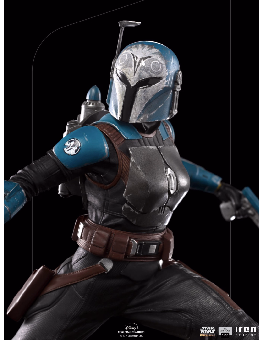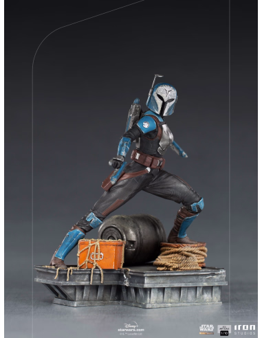 Iron Studios' line of statues from The Mandalorian series, featuring Mando and Grogu (Baby Yoda) Art Scale 1/10, and The Mandalorian BDS Art Scale 1/10 and Moff Gideon Art Scale 1/10 composing a battle diorama scene (both already available for Pre-Order - sold separately), adds one more to the incredible line, the "Bo-Katan BDS Art Scale 1/10 - The Mandalorian - Iron Studios" statue. Inspired by her first appearance in the live-action, in a defensive position and ready for action, she wields her blaster pistols over a diorama base filled with elements such as ropes, a box, and a barrel, which allude to the vessel's deck in the waters of Trask, where she flies in with her jetpack and lands to save Din Djarin. Faithfully portraying her armor, the figure presents the warrior with her helmet, preserving the mysterious Mandalorian aura... This is the way!