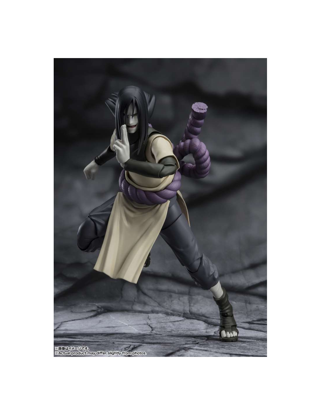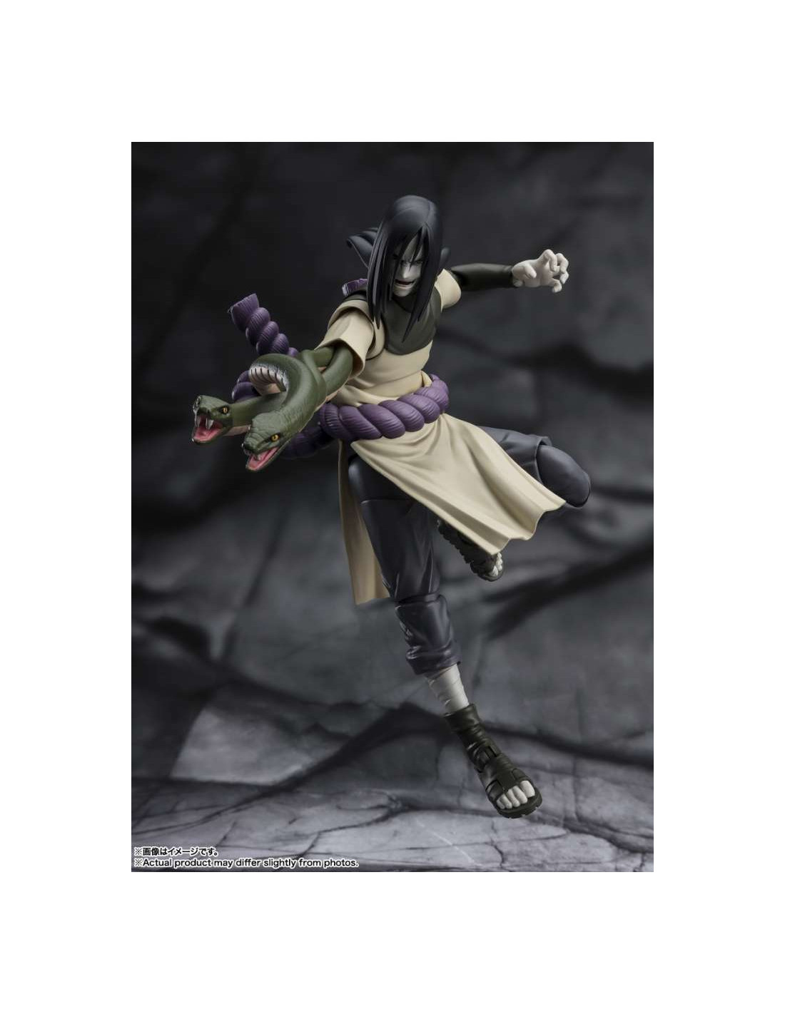 Orochimaru, uno dei Tre Ninja Leggendari di Naruto Shippuden, arriva nella prestigiosa linea S.H.Figuarts di Bandai Tamashii Nations. Questa action figure riproduce con precisione il carismatico antagonista della serie, fondatore del Villaggio del Suono e maestro di tecniche proibite.