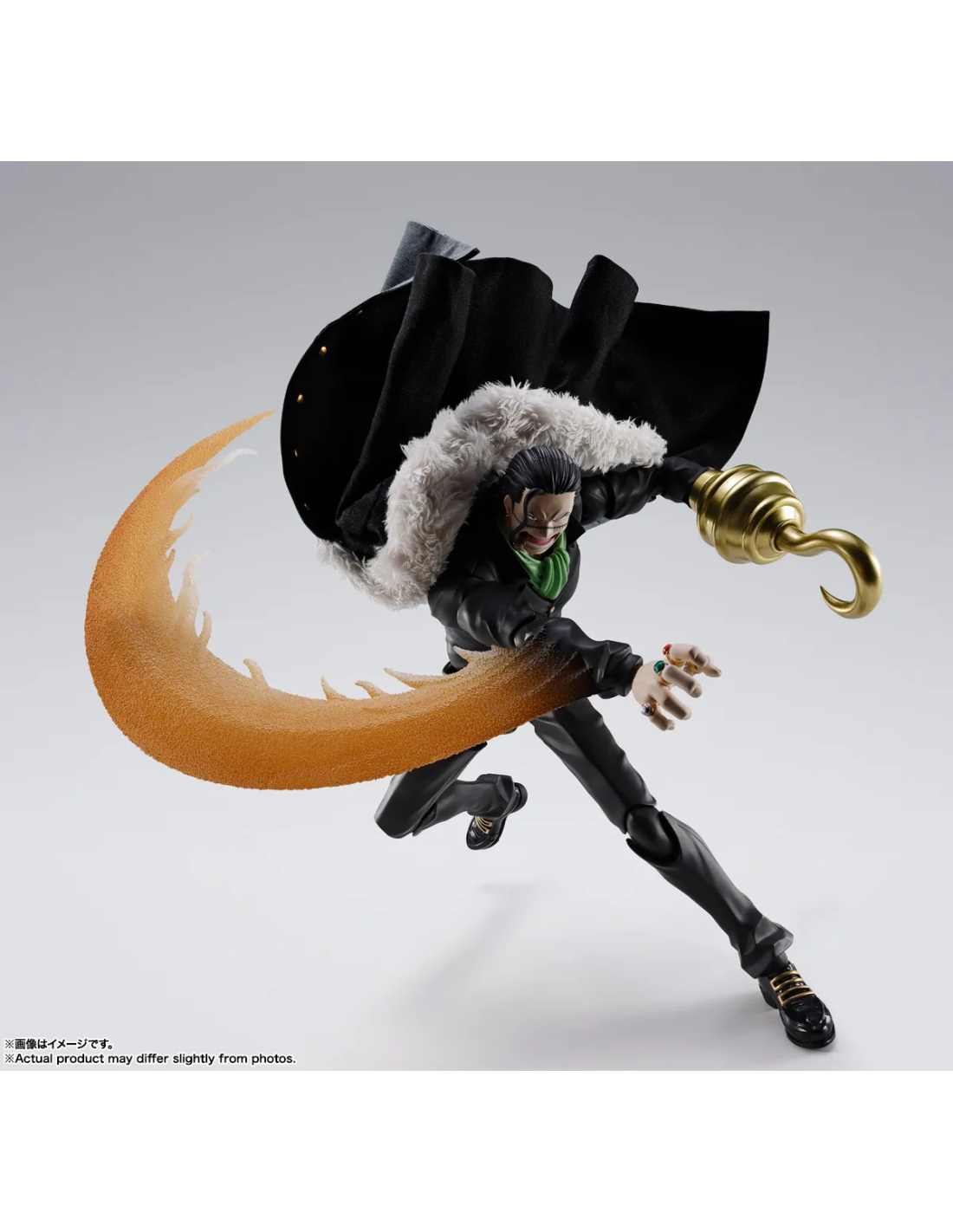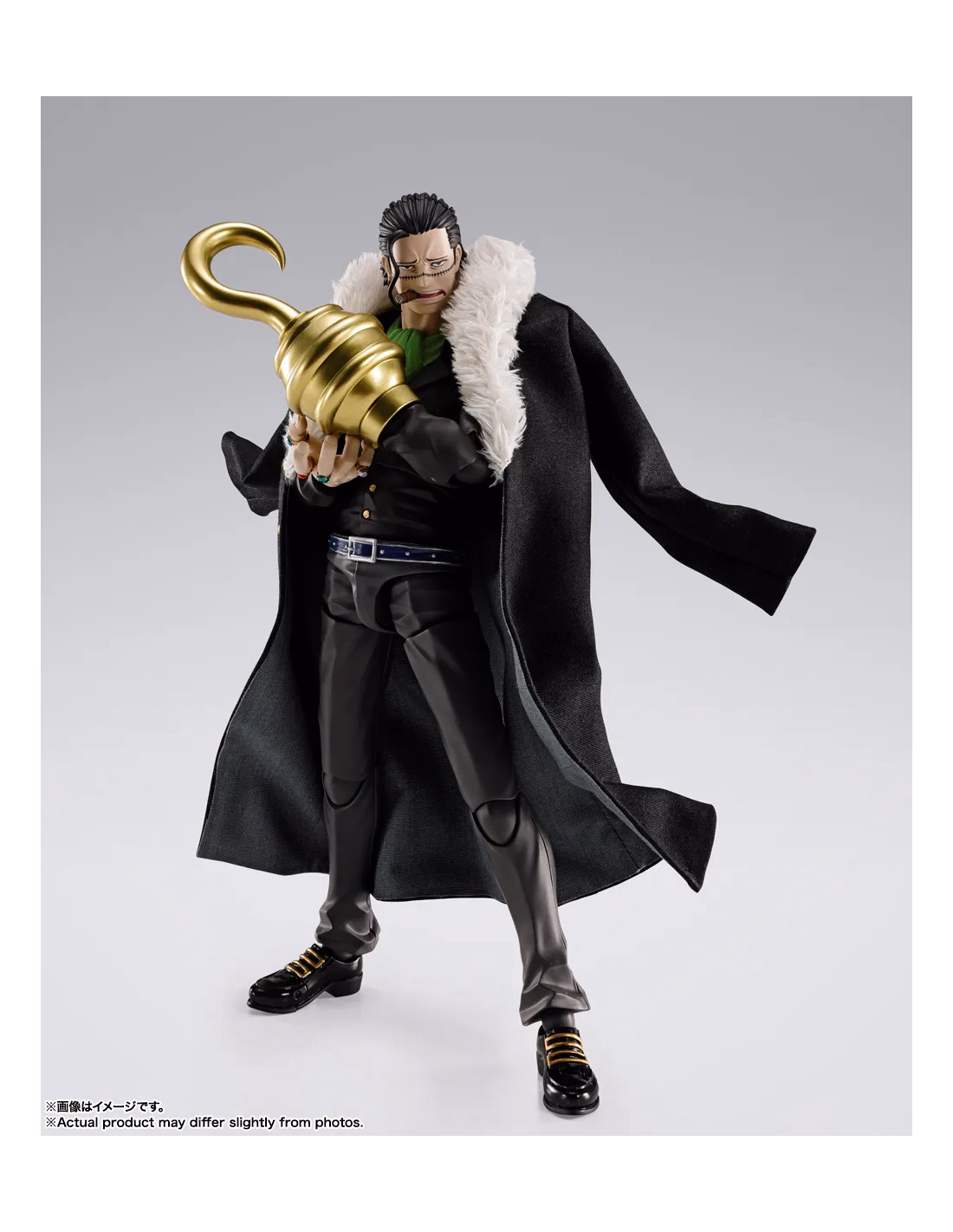 Tamashii Nations porta nella linea S.H.Figuarts Sir Crocodile nella versione della Guerra di Marineford, uno degli archi narrativi più intensi dell'intera serie di One Piece. La figure ritrae l'ex membro della Flotta dei Sette con il look indossato dopo la sua fuga da Impel Down: il completo scuro sotto il lungo mantello, il gancio dorato al posto della mano destra e l'inconfondibile cicatrice sul viso. La scultura è fedele all'estetica dell'anime originale con un livello di dettaglio adeguato alla fascia collezionistica della linea S.H.Figuarts.