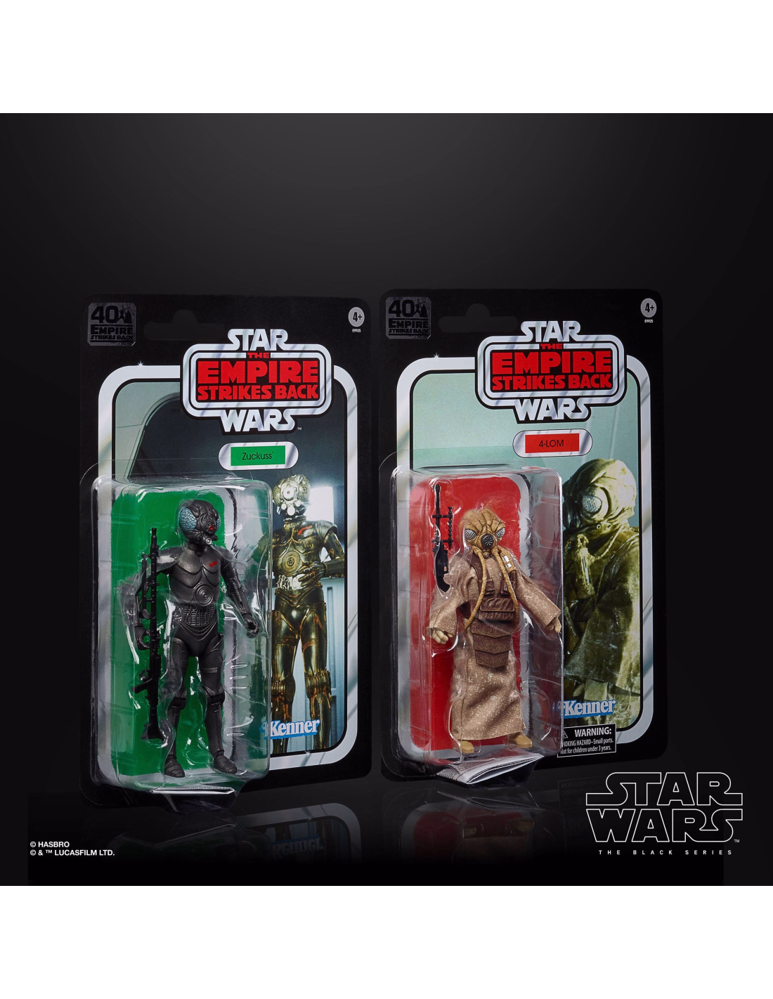 Confezione da 2 Action Figure: 4-LOM e Zuckuss! Quando Kenner ha prodotto per la prima volta le figure 4-LOM e Zuckuss, i nomi in qualche modo sono stati invertiti. La confezione originale è stata ricreata, cambiando nome e tutto.