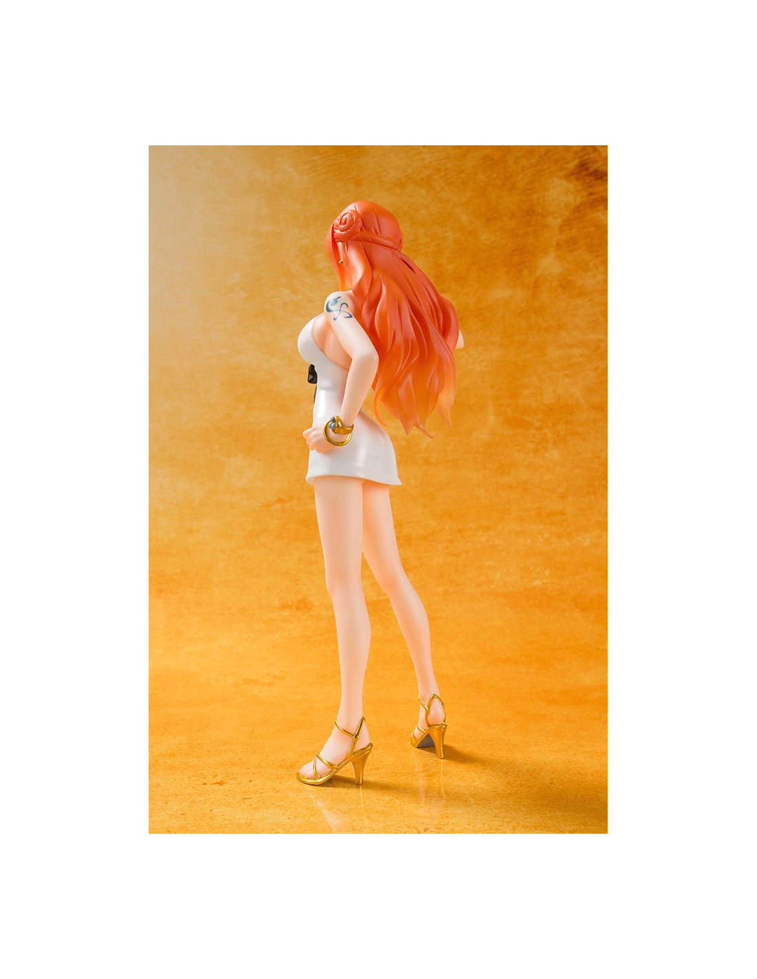 Ecco una nuova serie di FiguartsZero di Bandai ispirate a "One Piece Film Gold"! Contrariamente ai suoi compagni di avventura, tutti vestiti in nero, Nami indossa un bel vestito bianco, con sandali dorati. I dettagli sono ottimi. Nella scatola troverete anche uno stand display.