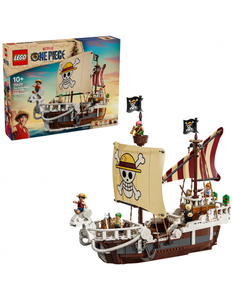 La nave pirata Going Merry LEGO® ONE PIECE (75639) porta nelle vostre mani l'avventura della Ciurma di Cappello di Paglia. Con 1.376 pezzi da assemblare, questo modello ricrea nei minimi dettagli l'iconica imbarcazione del manga e della serie Netflix, offrendo un'esperienza di costruzione coinvolgente per ragazzi dai 10 anni in su.