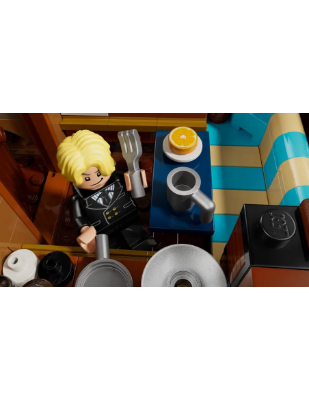 Interni completamente arredati: sotto coperta si trovano la cabina dell'equipaggio, una cucina attrezzata dove Sanji prepara i pasti, zone di stoccaggio per provviste e tesori, e l'officina di Usopp per creare armi e accessori. Ogni ambiente è progettato per il gioco interattivo e ricco di elementi autentici dalla serie.