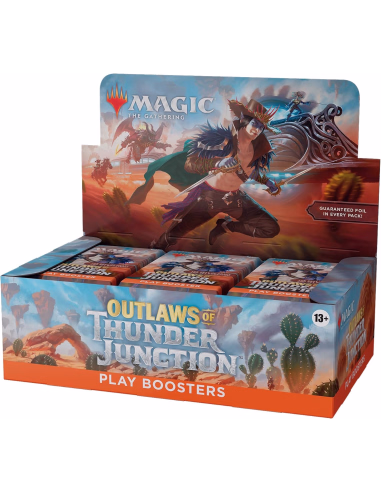 Sei pronto a farti strada in un piano inesplorato dove la legge del più forte regna sovrana? Tuffati a capofitto in Outlaws of Thunder Junction, la nuova espansione di Magic: The Gathering, con questo fantastico display contenente ben 36 buste Play Booster.