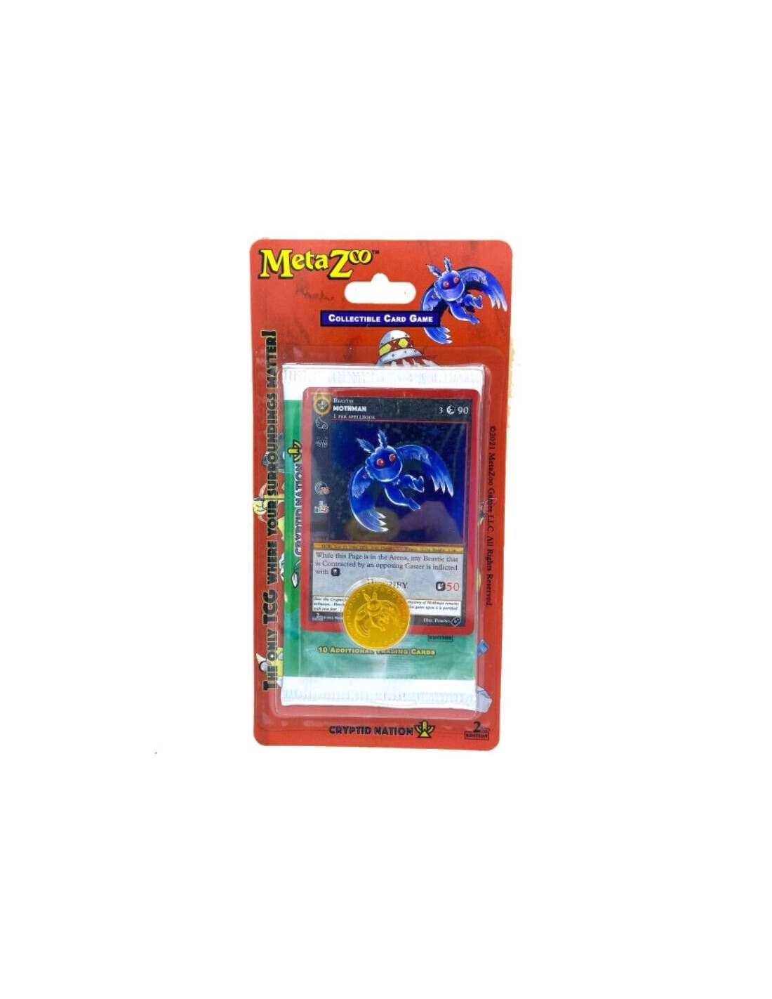 - Una carta promo di Mothman Full Holo, uno dei "Cryptid", mostriciattoli leggendari più ricercati del gioco.
