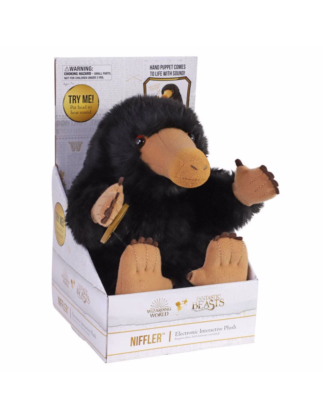Il Niffler reagisce quando viene toccato sulla testa, emettendo suoni caratteristici che richiamano quelli visti nei film. La costruzione accurata riproduce fedelmente l'aspetto della creatura magica, con dettagli curati che soddisfano collezionisti e bambini.