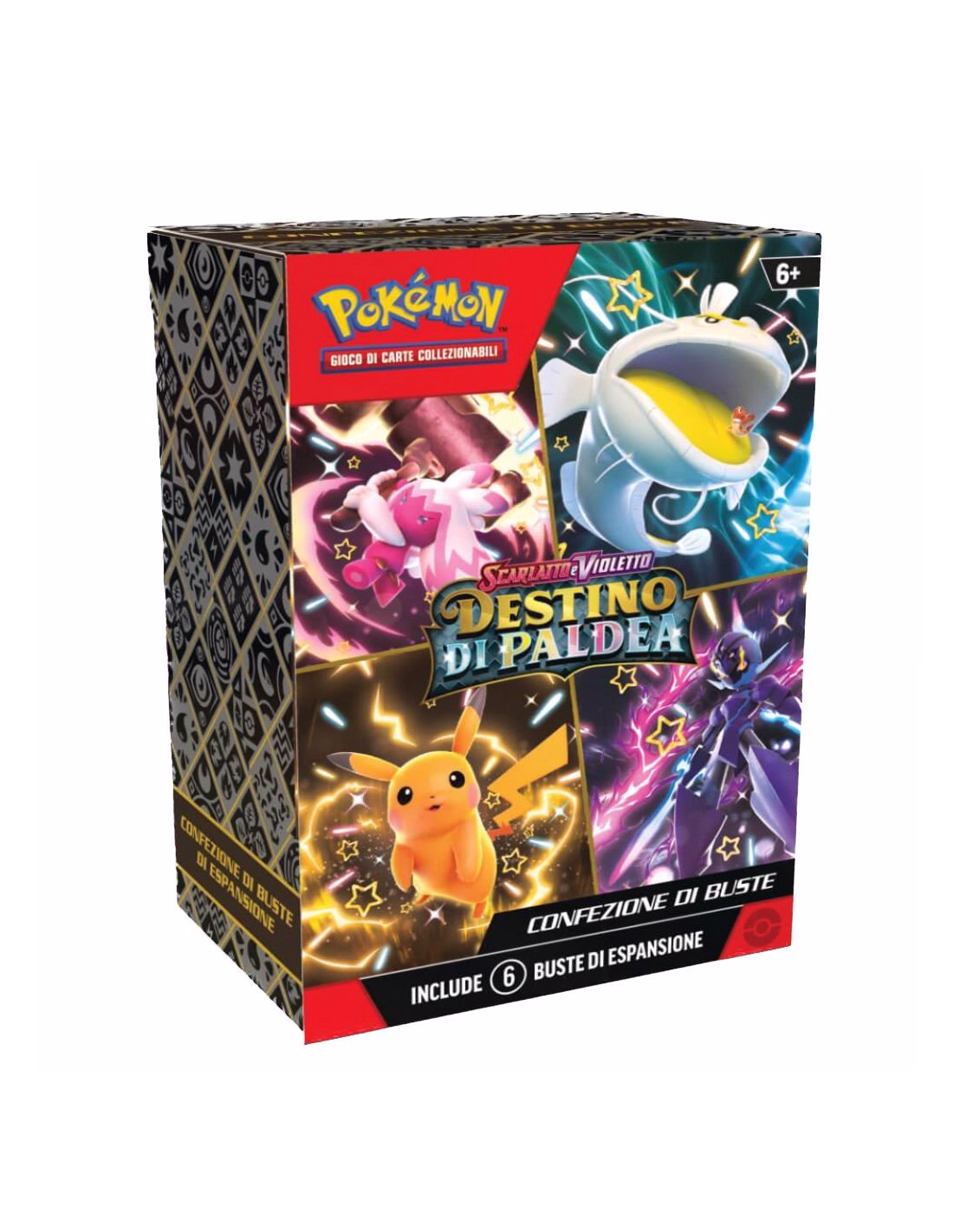 Il Bundle della Collezione Destino di Paldea contiene 6 buste dell'espansione Destino di Paldea del GCC di Pokémon.