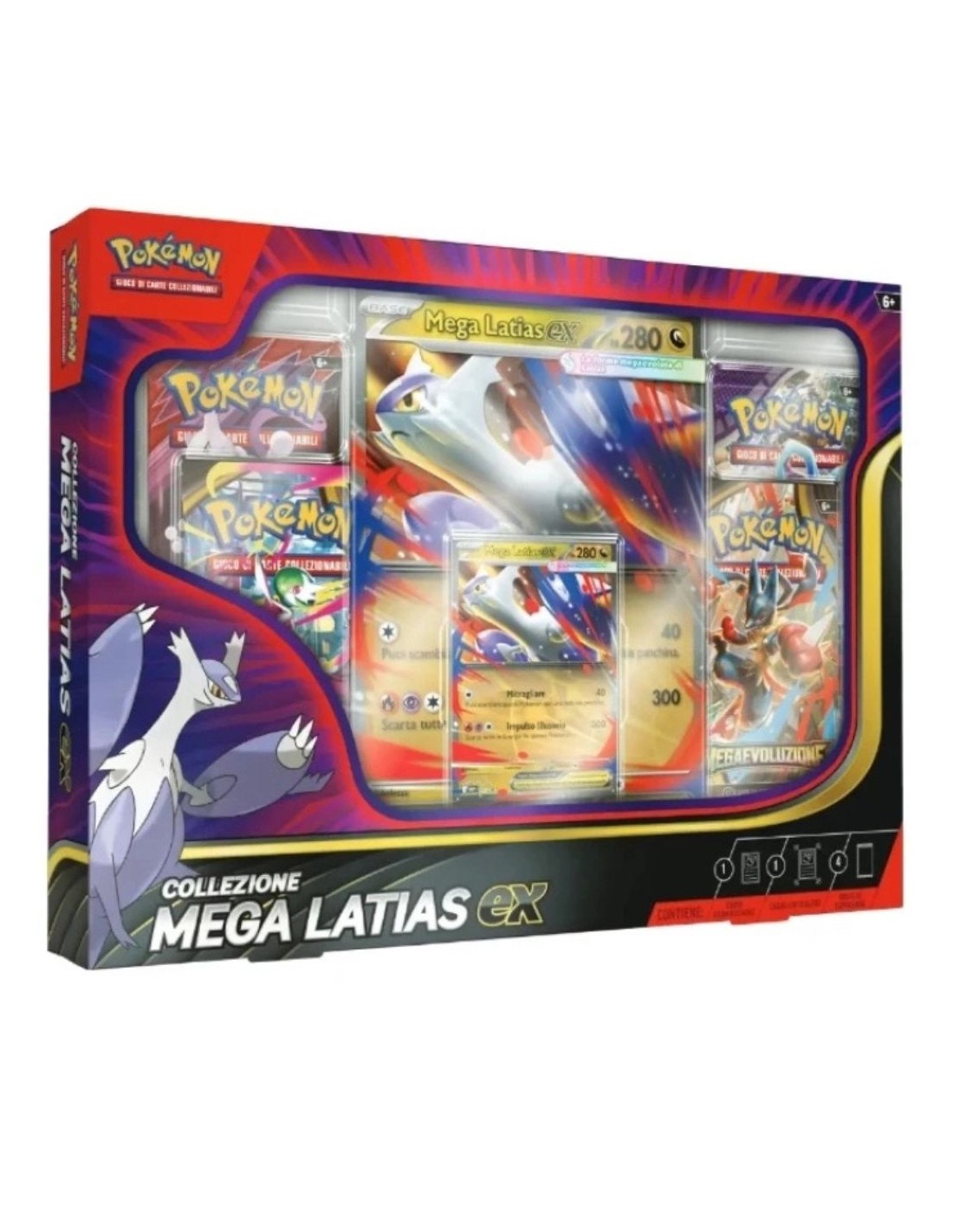 All'interno della collezione sono presenti quattro bustine del GCC Pokémon, che offrono la possibilità di scoprire ulteriori carte per completare il proprio mazzo. La carta promozionale Mega Latias-EX si distingue per la finitura olografica e l'artwork esclusivo, mentre la carta jumbo con effetto lenticolare costituisce un elemento di grande valore per i collezionisti.