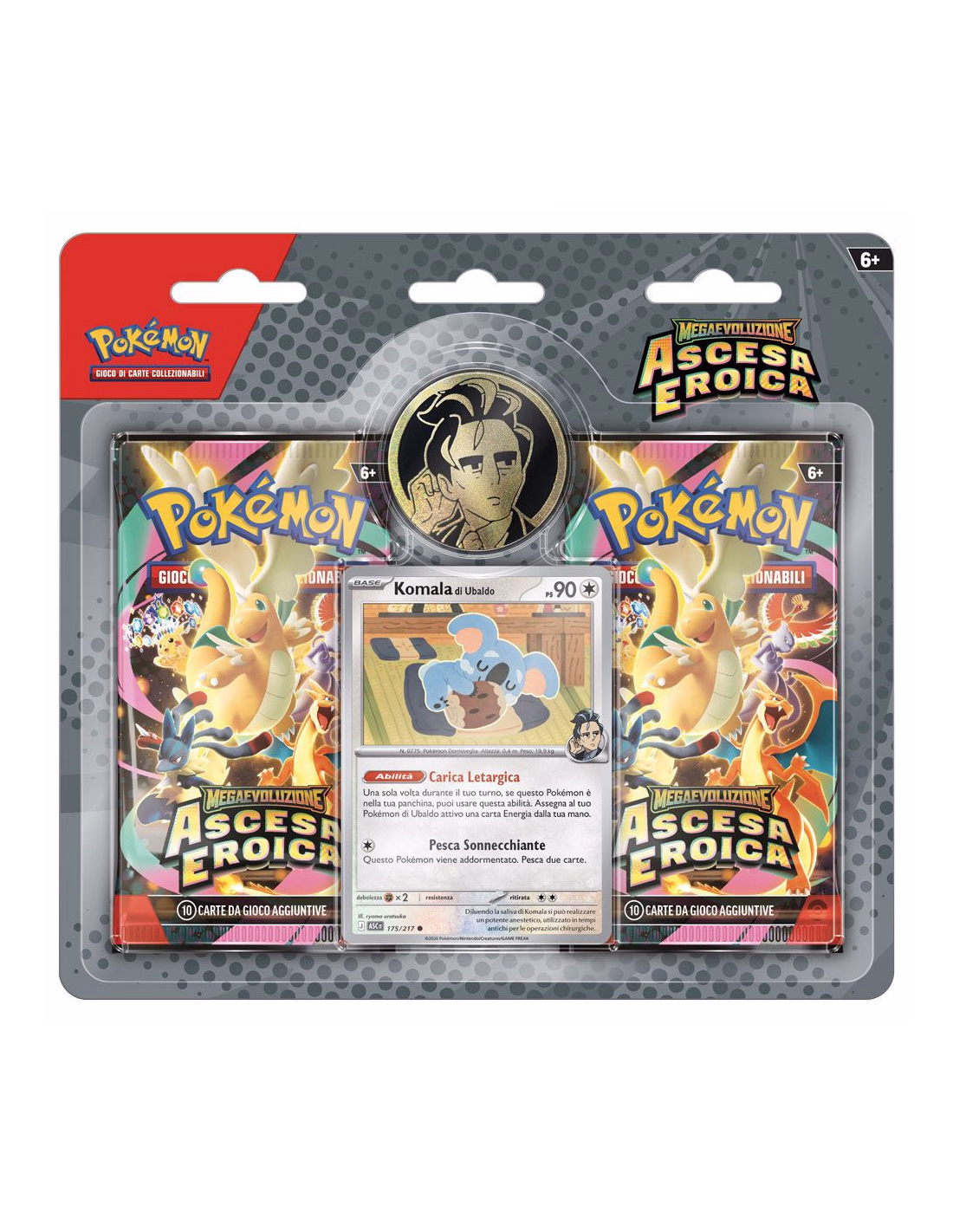 All'interno trovi anche una moneta metallica raffigurante Ubaldo, un accessorio da gioco che richiama lo stile sobrio e professionale del Capopalestra. Le due buste dell'espansione completano il contenuto, offrendo la possibilità di trovare Pokémon-ex Megaevoluzione, carte Allenatore e le nuove carte "rara attacco Mega" con illustrazioni in stile pop-art. Ogni busta contiene 10 carte da gioco, un'Energia base e una carta codice per GCC Pokémon Live.