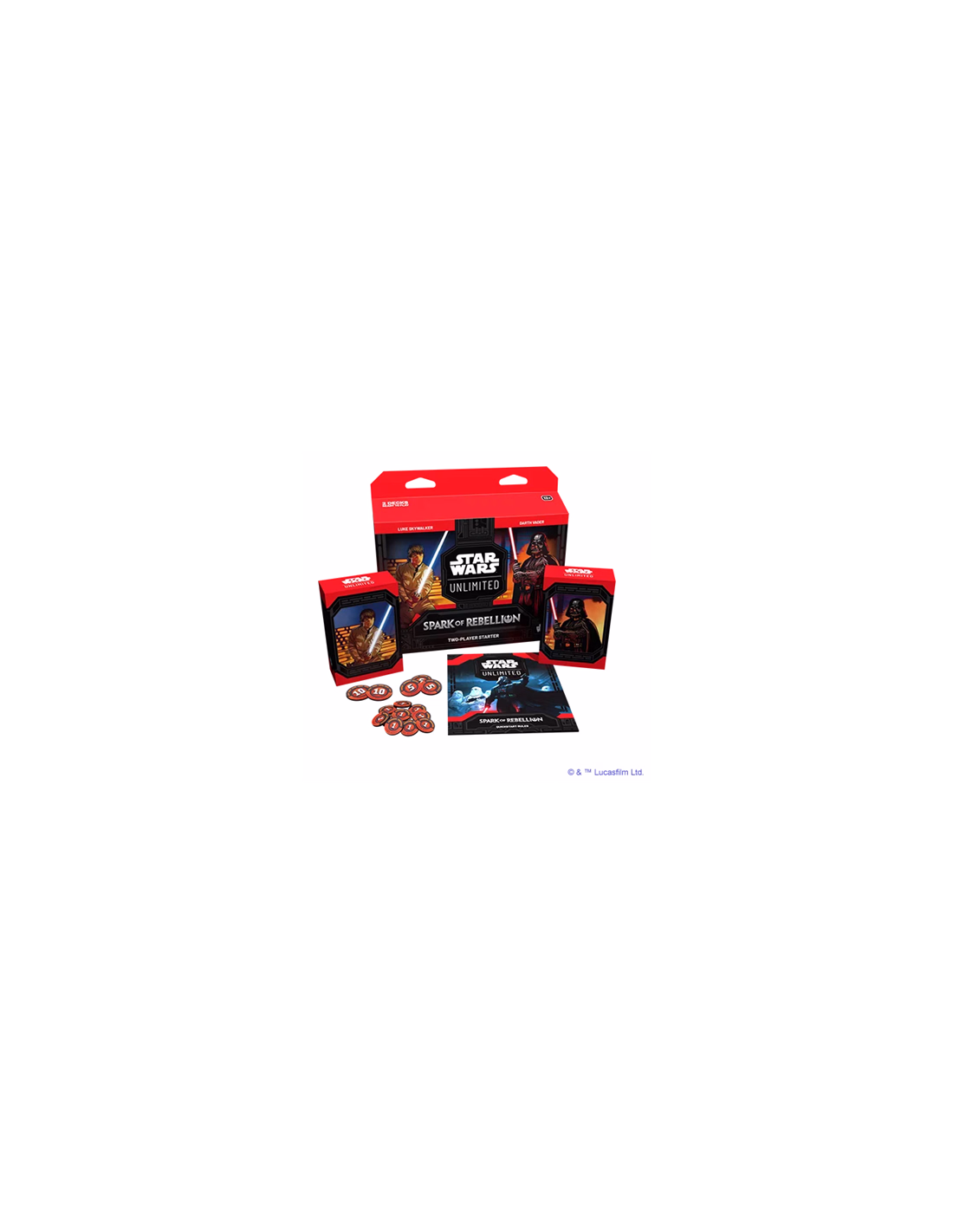 Nello starter per due giocatori del primo set del gioco, Spark of Rebellion, troverai due mazzi precostruiti e pronti per giocare, in cui tu e un amico potrete tuffarvi in questo fantastico gioco di carte ed iniziare a imparare il gioco.