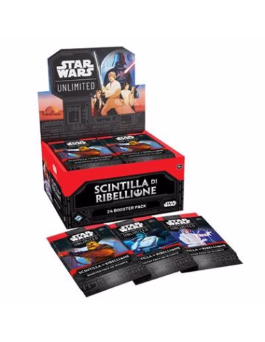 In questo gioco di carte dal ritmo frenetico e facile da imparare, tu e il tuo avversario vi affrontate in emozionanti battaglie testa a testa in compagnia dei mitici personaggi di Star Wars. In questo box di buste per il primo set del gioco, Spark of Rebellion, in lingua italiana, troverai 24 pacchetti, ognuno dei quali contiene: