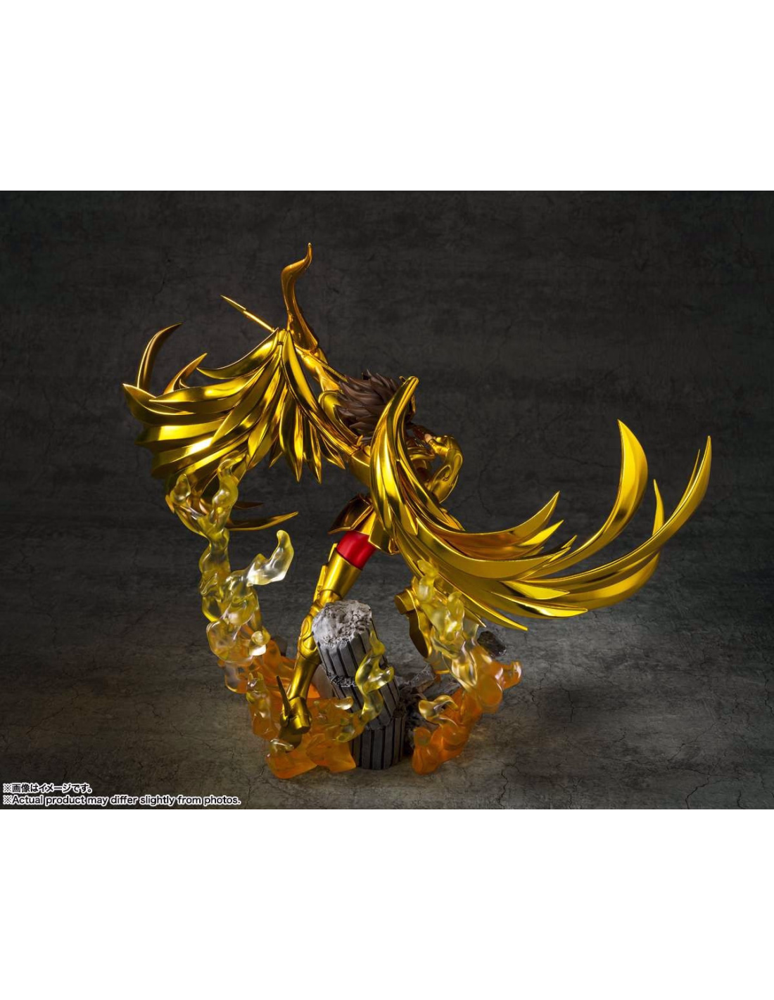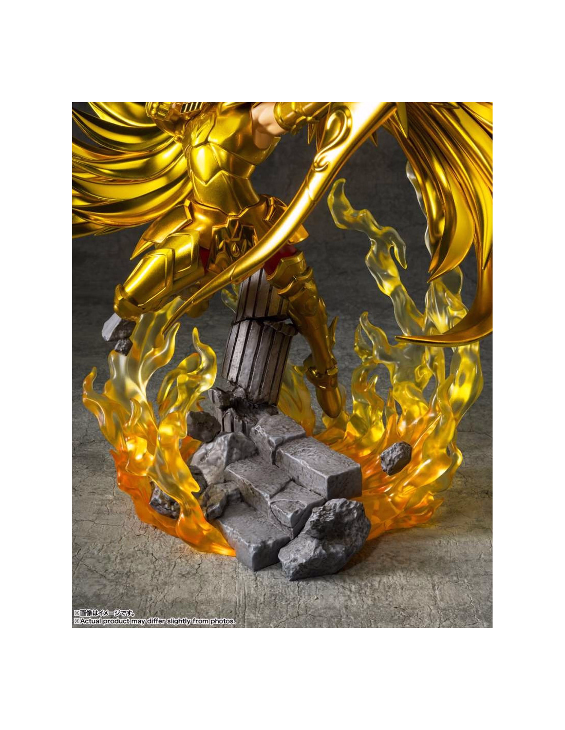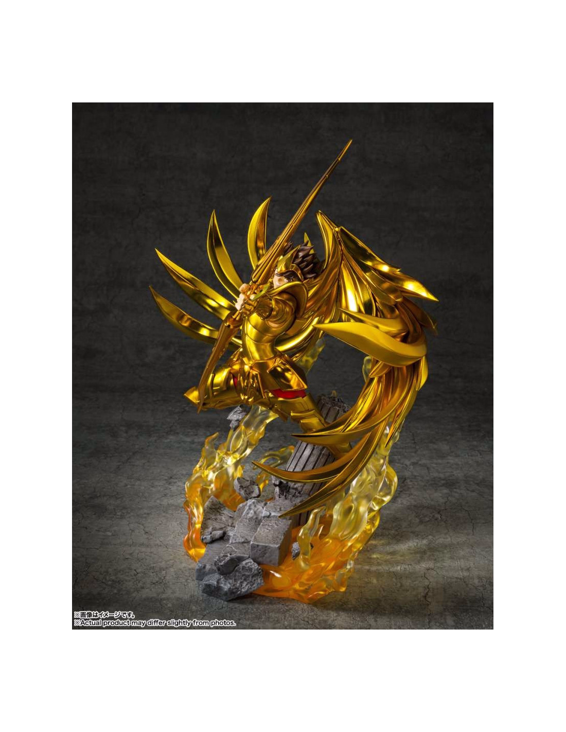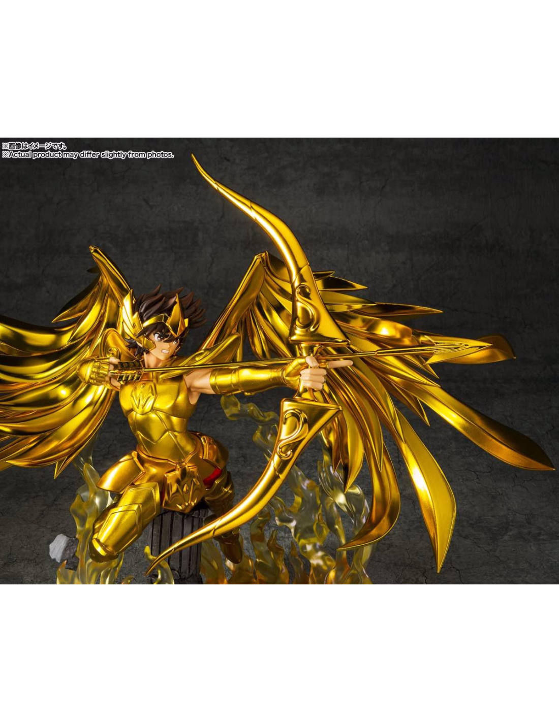 Il Cavaliere d'Oro del Sagittario, Seiya, viene rappresentato nel suo momento caratteristico, mentre è pronto a scoccare la sua freccia. La statua cattura perfettamente questo personaggio molto amato della serie Saint Seiya.