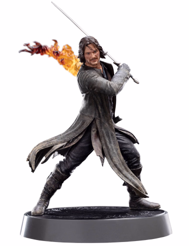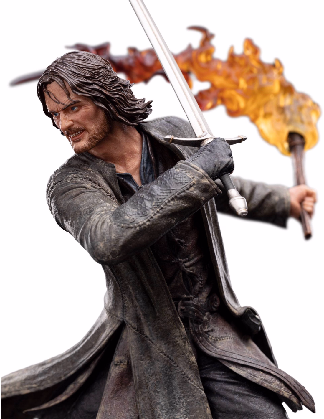 Qui, il coraggioso Aragorn si lancia in battaglia per salvare la vita dei suoi nuovi compagni Hobbit: una torcia in mano, per tenere a bada l'oscurità.