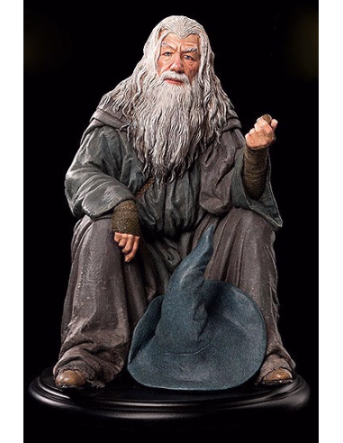 Scolpito da Steven Saunders e creato dagli stessi artisti e artigiani che lavorano ai film. Gandalf, un antico e potente mago, era una guida della Compagnia e mentore di Frodo nella sua ricerca per distruggere l'Unico Anello nelle fiamme del Monte Fato. Visto l'ultima volta da Frodo e dai suoi compagni precipitare verso la morte certa dal Ponte di Khazad-Dûm, intrecciati nella lotta con i Balrog, la scomparsa di Gandalf sembrava inevitabile...La statua esprime tutta la saggezza e la lungimiranza di questo straordinario personaggio.